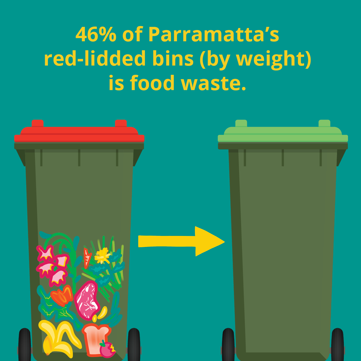 As of 2022, food waste makes up almost half of the material (by weight) in the City of Parramatta’s general waste bins.