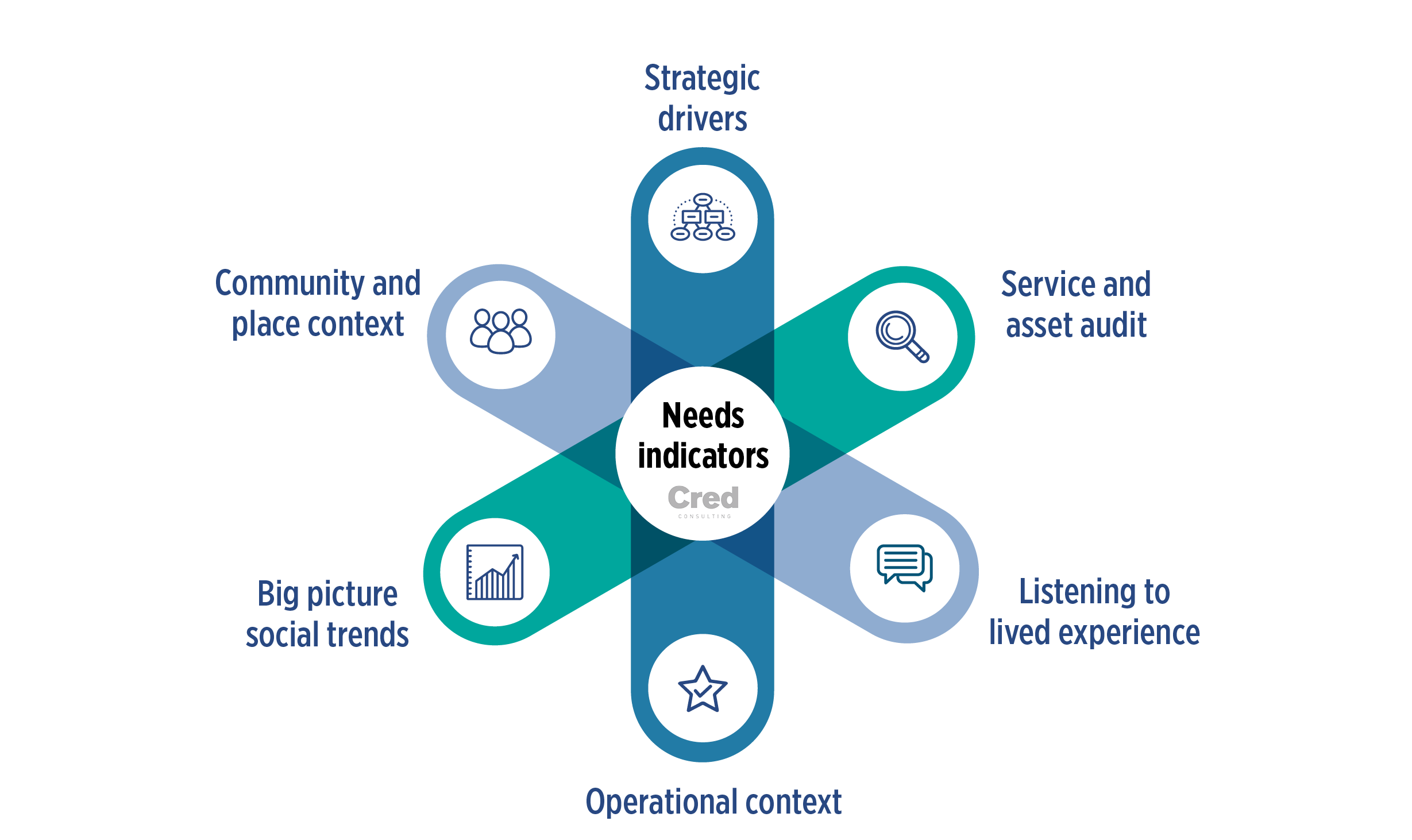 Cred is a strong advocate for understanding community needs as a first principle in delivering social value. Understanding needs is about having an evidence base of the unique challenges and opportunities that exist in a community. In the Guide, we have included our community needs indicators (see below) to support property owners and managers in knowing what data they need to guide their efforts in delivering community resilience actions and programs to success.